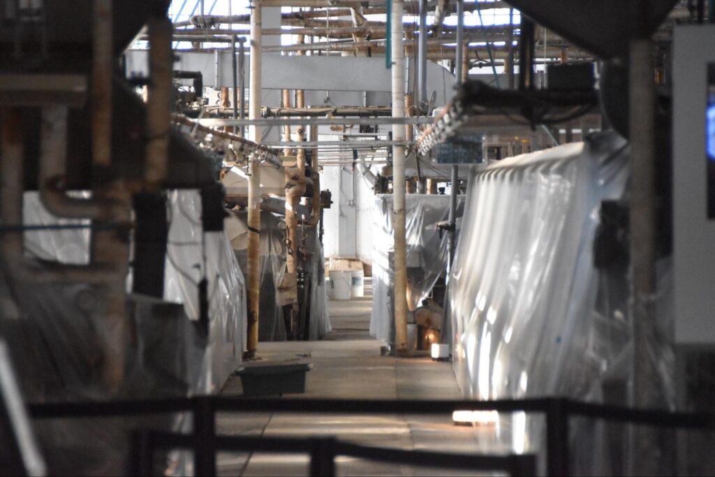 Left largely as they were when operations ended in 1987, the machines stretch across the floor in neat, repeating lines. The symmetry gives the space an almost gallery-like feel—closer to a modern art installation than an industrial site.